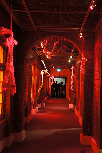●接著是《暗黑破壞神》,也是被大破遺忘最多部份的遊戲XD。《暗黑破壞神》是以恐怖作為主題,走廊上佈置了一堆骷髏,外加上紅色的燈光,感覺真的不太舒服。讓大破覺得好笑的地方,是展區內放著小鬼的笑聲,那個笑聲真的很逗趣,把氣氛都破壞掉啦XD