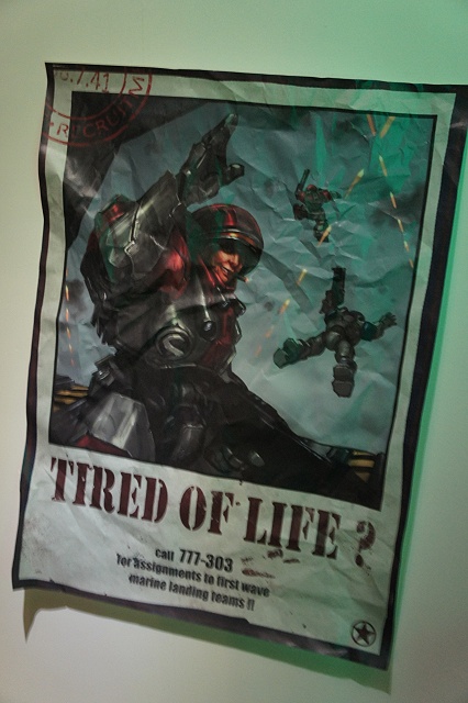 ●在《星海爭霸》展區中,可以看到許多與遊戲故事中有關的海報,讓你彷彿進入《星海爭霸》的故事之中。人類的無知與盲從,似乎在《星海爭霸》中表露無遺。