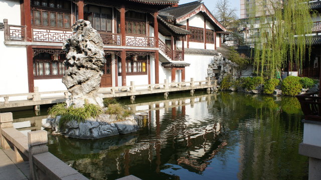 ●逛著逛著,走到了「聽雨軒」。在那兒有個小型的中式庭院,相當悠閒與美麗的一塊地方。中式庭院造景的功力可說是中國文化的一塊瑰寶啊!