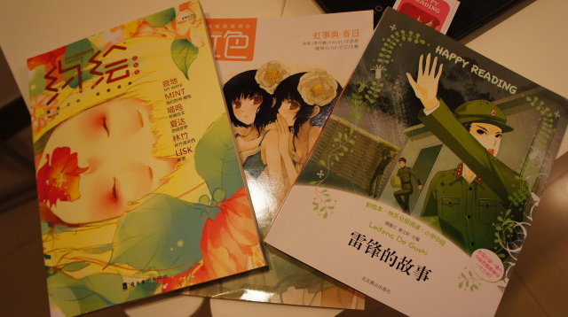 ●離開的時候到了龍申書店買了《約繪》和《雷峰的故事》。《約繪》我想我就不多說了,原創作品肯定要支持的!至於《雷鋒的故事》,看著他的插畫封面,大破聞到了腐味(怎麼連偉大的人民英雄都可以腐呢?)就某些程度來說,這本應該算是富有中國特色的輕小說吧?
