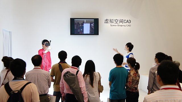 ●虛擬空間CAD:這東西超有趣的,簡單來說就是結合實境,在虛擬的空間中製作出虛擬的模型。以往使用CAD的時候,設計師多半都是在電腦螢幕前製作,但是往往不知道做出來的東西和實際空間的感覺有何差異,有了這東西就可以在製作過程中與現實空間作比對,同時可以進行調整。CANON是說他們的相機造型現在都是用這套系統在進行設計了。