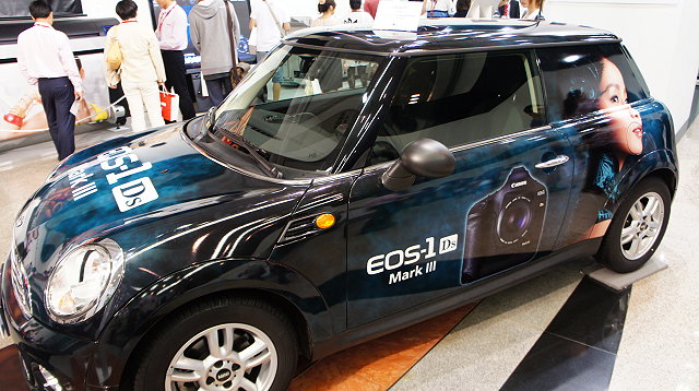 ●到了一樓,則是展示了大幅面印表機的技術。只要有了CANON,製作痛車也不是難事(真的嗎?)這邊的SG算是蘿莉型,馬上又殺了記憶卡。