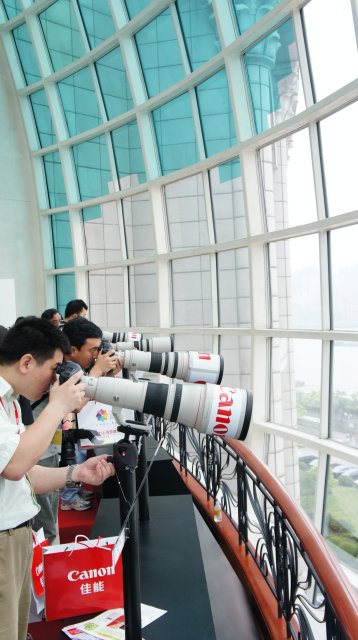 ●走到船頭,是所謂的「望遠區」,不過我個人看來,這邊是「敗家區」,這裡的每顆鏡頭都不便宜啊!機身一律是1D MARK IV,小弟很窮,看看就好……