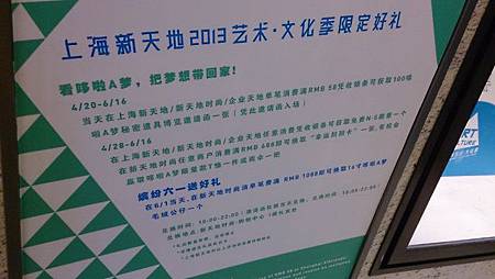 ●上海的展覽名稱不太一樣,直接更名為“哆啦A夢秘密道具博覽”。而展覽的場地並不是什麼美術館還是什麼活動中心,而是直接就是在新天地時尚購物中心中舉辦。換言之,整個購物中心就是展覽館。